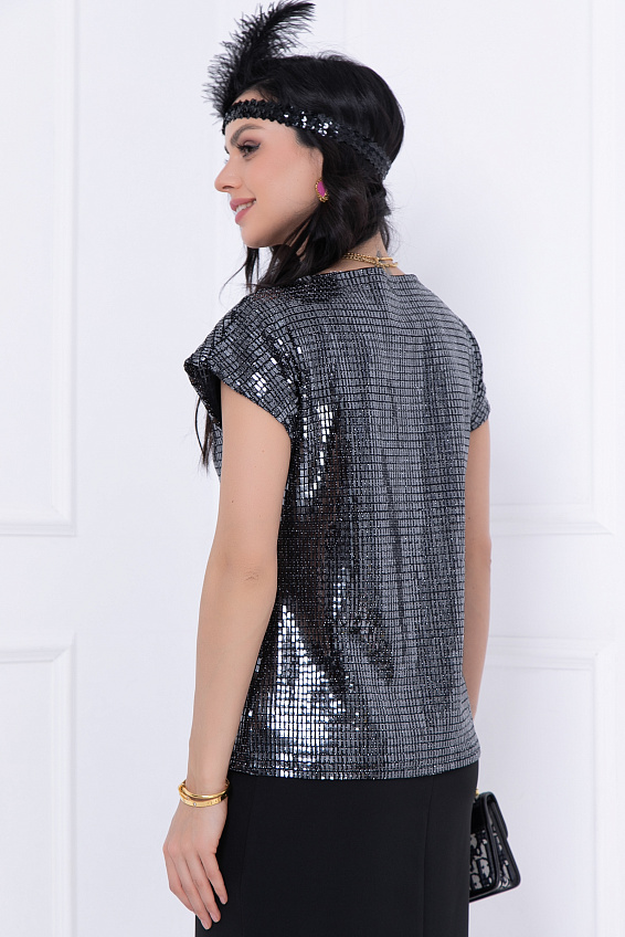Стильная блуза Аццера из трикотажа с паетками – идеальный выбор для тех, кто любит блестящие и необычные вещи! Цельнокроеный короткий рукав придает блузе легкость и свободу движений, а паетки добавляют блеска и элегантности. В сочетании с классическими брюками и жакетами эта блуза подойдет для повседневной носки. Дополнив образ акцентными аксессуарами Вы сможете использовать блузку для праздничных выходов!