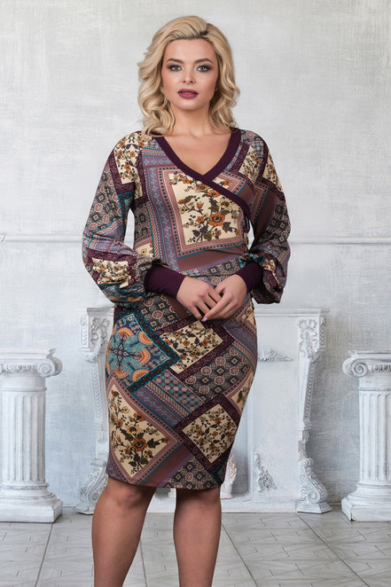 «Клаудия» — силуэтное платье с ярким принтом. Свободный длинный рукав с манжетами и декольте с запахом сделают вас привлекательной. Будьте яркой, модной и сексуальной в любое время года вместе с «Белловера»! Длина изделия: 44 размер — 108 см