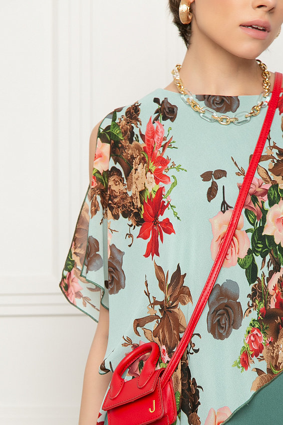 Мерани – платье-футляр, комбинированое из двух видов ткани – фактурного шифона высочайшего качества и однотонной плательной ткани зелёного цвета. Верхняя накидка с ассиметричным низом из воздушного, легкого и летящего шифона скроет все недостатки фигуры, что даст Вам возможность чувствовать себя комфортно и уверенно. Платье из воздушного шифона – это настоящее олицетворение нежности и красоты, оно прекрасно подойдет для вечерних мероприятий и повседневной носки. Цветочный принт всегда прекрасен: он радует нас яркими красками и напоминают о теплых летних днях. Широкий размерный ряд позволит каждой женщине стать неподражаемой!