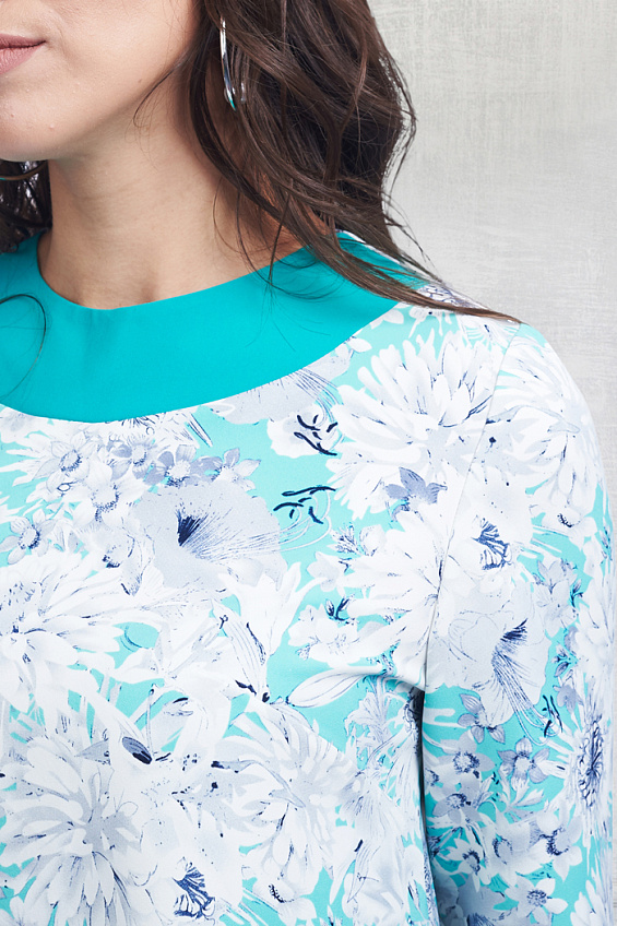 Виано – платье трапецевидного силуэта. Яркий цветочный принт, карманы в боковых швах оторочены отделкой в цвет оборки выреза горловины – глубокого бирюзового оттенка . Платье отлично подойдет как для офисных будней, так и для торжественных событий. Будьте неотразимой вместе с “Белловера”!
